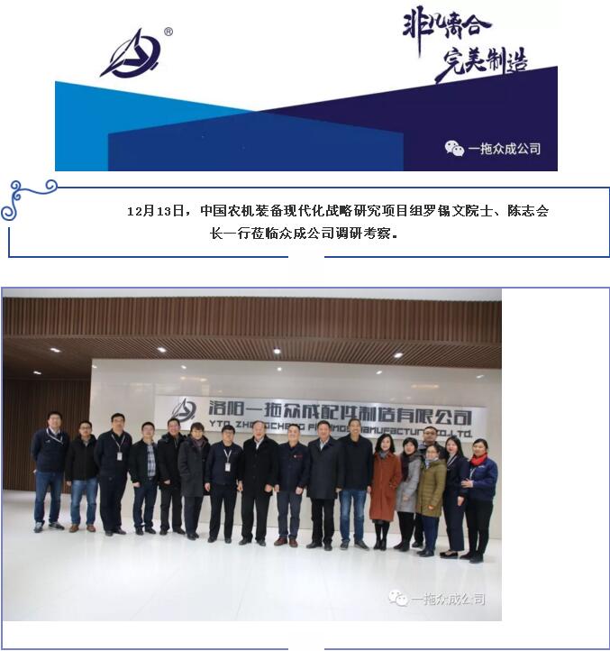 中國農(nóng)機(jī)裝備現(xiàn)代化戰(zhàn)略研究項(xiàng)目組羅錫文院士、陳志會(huì)長一行蒞臨我公司